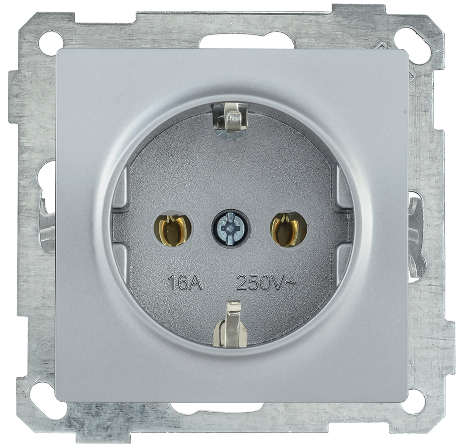 ERB11-K23-16 РС11-1-0-Б Розетка с з/к 16А BOLERO серебряный ИЭК
