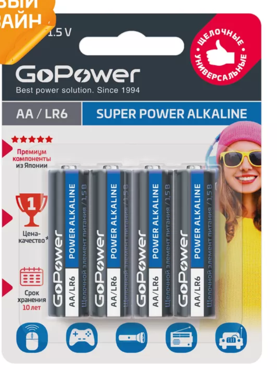 Батарейка AA LR06 Alkaline 4шт/упак GoPower