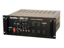 Тромбон-УМ4-120 класса D Усилитель средней мощности, основное питание от сети - ~220В, резервное питание от источника постоянного тока- =24В, номинальная выходная мощность - 120 Вт, входов - 4, выходное напряжение 30, 70, 100, 120 В, диапазон частот по микрофонному и линейным входам - 100-20000 Гц, по входу оповещения - 100 - 12500 Гц, габариты - 438х285х88 (2U) мм, 7,5кг. В качестве источников резервного питания рекомендуется блок резервного питания Тромбон БП-7/14/21.