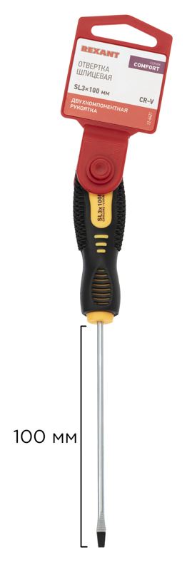 Отвертка шлицевая SL3х100мм, двухкомпонентная рукоятка REXANT (12-6421)
