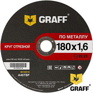 Круг отрезной по металлу 180x1.6 мм GRAFF для болгарки