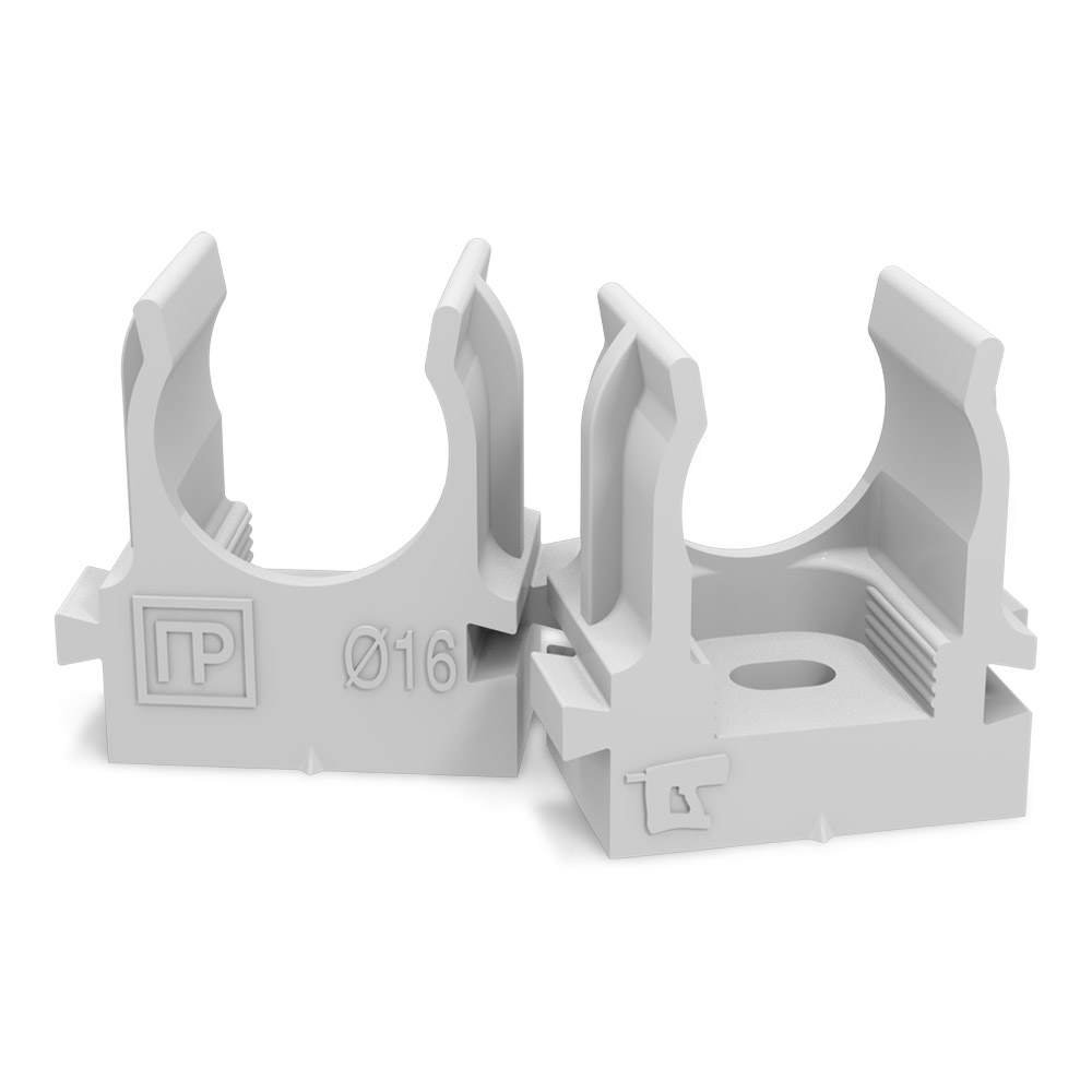 Крепеж-клипса для труб для прямого монтажа серая в п/э d16 мм (100шт/уп) Промрукав PR13.0119