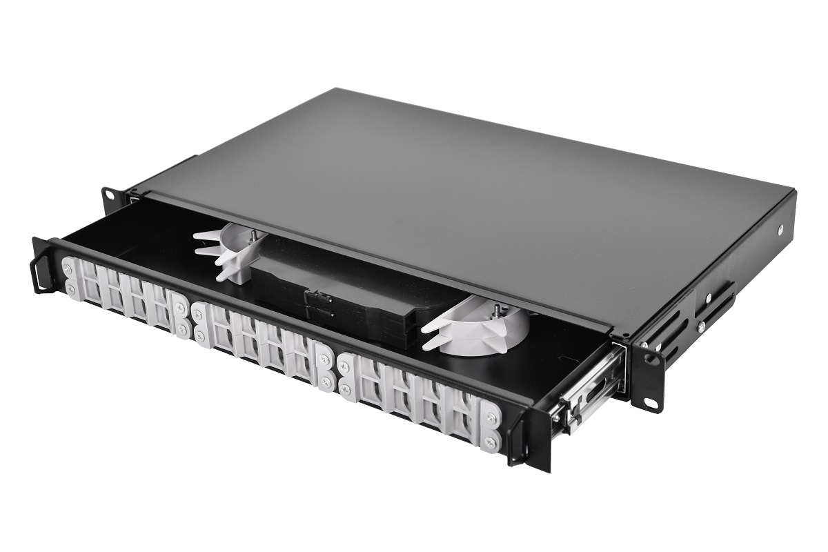 БОН-19-1-24-В-9005 Оптический кросс (бокс) 19" выдвижной, 1U, до 24 портов, цвет черный