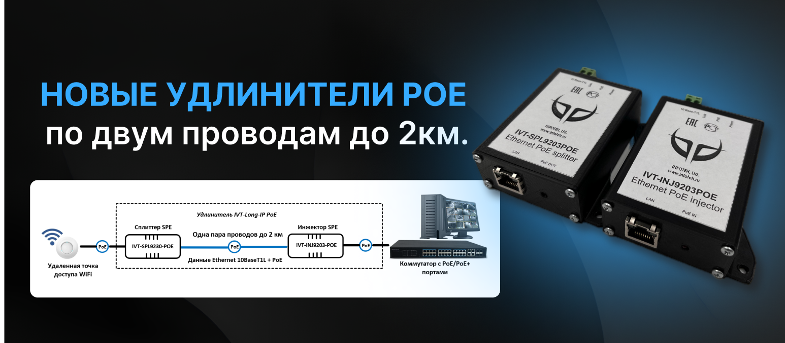 ИНФОТЕХ IVT-Long-IP PoE - Новые удлинители PoE по двум проводам до 2км